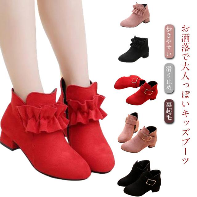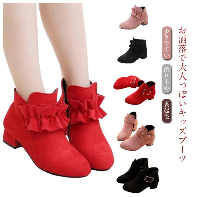 靴 キッズ フリル スエード ショートブーツ 女の子 七五三 ショートブーツ ベルト おしゃれ 卒園式 歩きやすい 滑り止め 子供 ジュニア 可愛い かわいい 裏起毛タイプあり 防寒 シューズ 春秋冬 通学 通園 お出かけ ギフト プレゼント