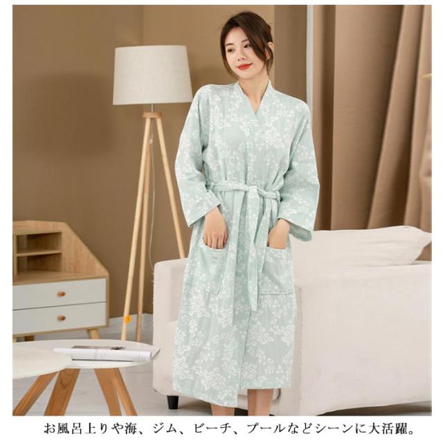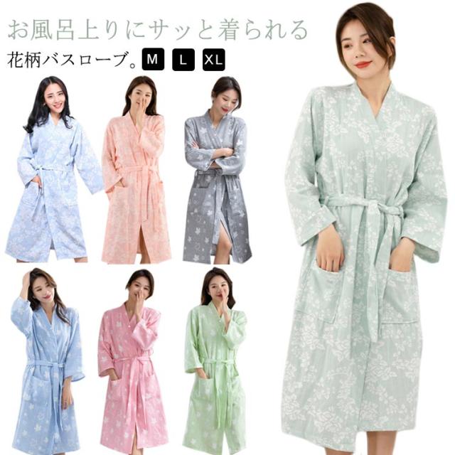 | お風呂上りにサッと着られる花柄バスローブ。 吸水性優れたガーゼ綿生地を使用。 柔らかく、気持ちの良い肌触りが魅力的! お風呂上りや海、ジム、ビーチ、プールなどシーンに大活躍。 | |