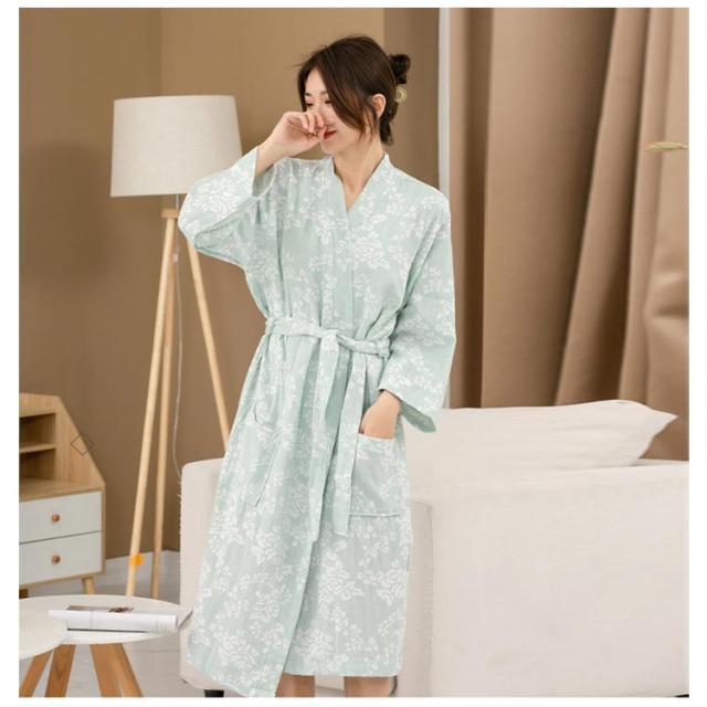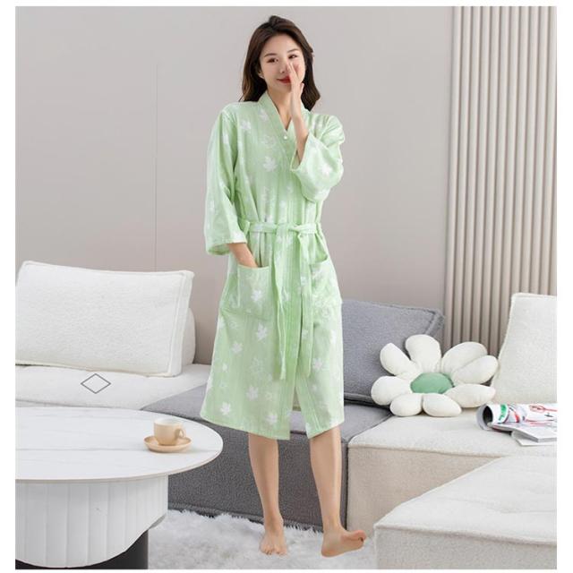 全7色 ナイトガウン 快適 サウナ プレゼント マタニティ 妊婦服 レディース 産前産後 風呂 パジャマ ガーゼコットン ミディアム丈 部屋着 寝間着 吸水 全7色 汗取り サウナ 湯浴み着 夏 入院 介護 M L