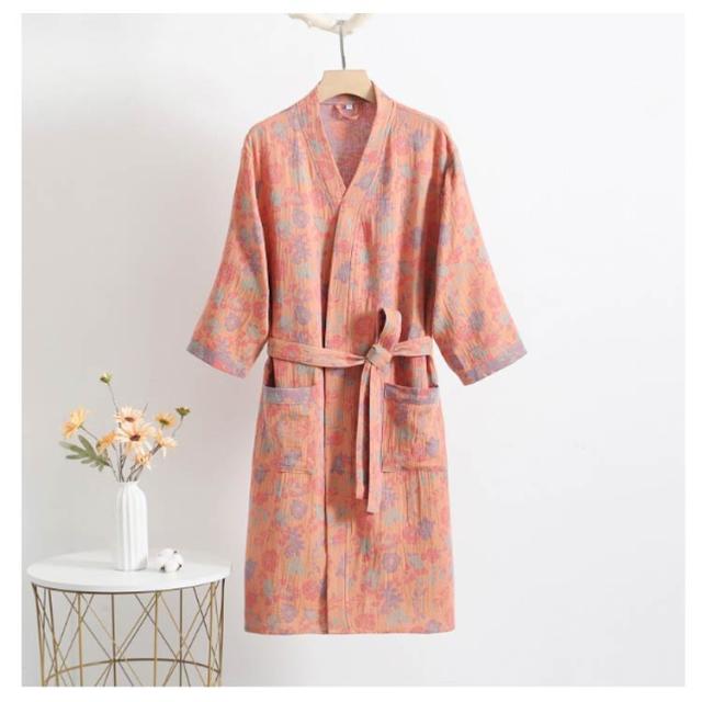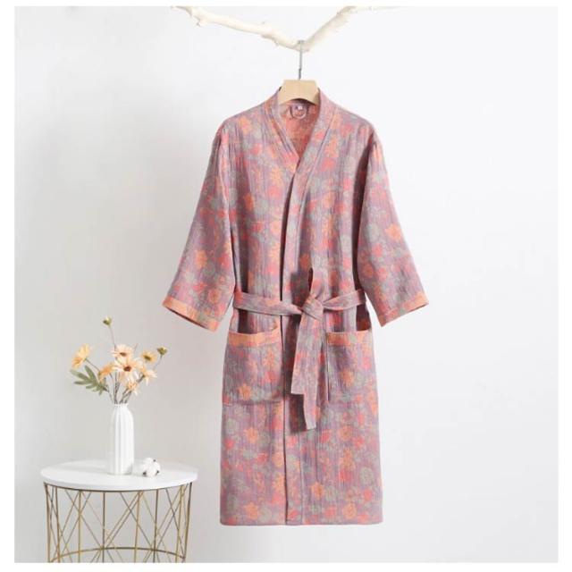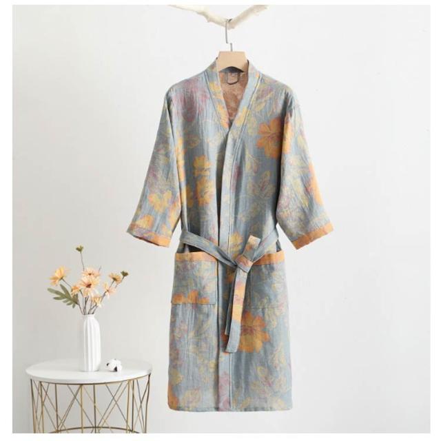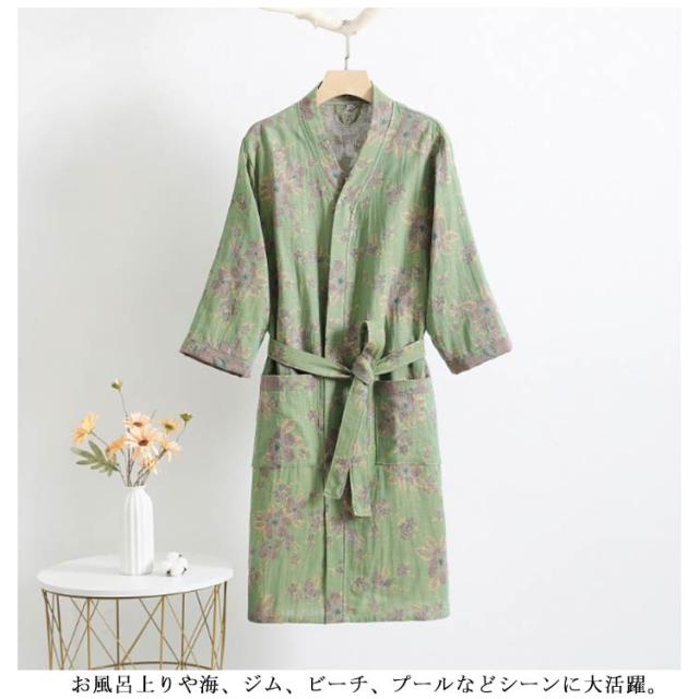 花柄 花柄 ガウン レディース バスローブ ナイトガウン ベルト付き ポケット ルームウェア ガウン着 吸水 カップル 男女兼用 メンズ 浴衣式 ガーゼ綿 ナイトウェア 部屋着 お風呂上がり おしゃれ プレゼント M L