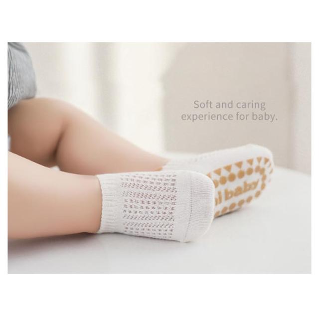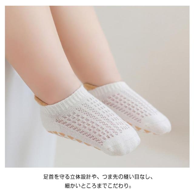 | 滑り止め付きベビーソックス。 くるぶし丈3足入りセット。 足首を守る立体設計や、つま先の縫い目なし、細かいところまでこだわり。 滑り止めは足裏面積90%以上に!つかまりだちや伝い歩き、歩き始めやおうちの中で走っちゃう年齢まで。 通気性もよくオールシーズン着用可能! | |