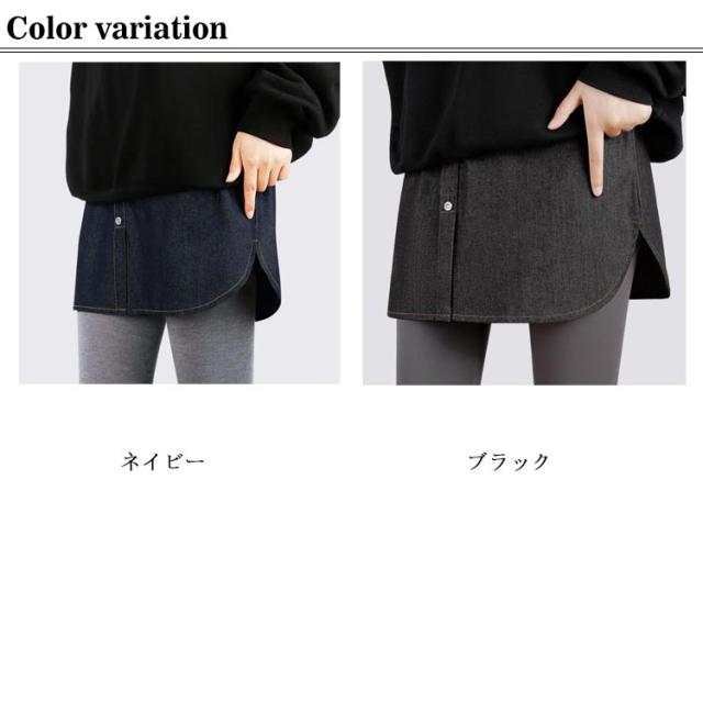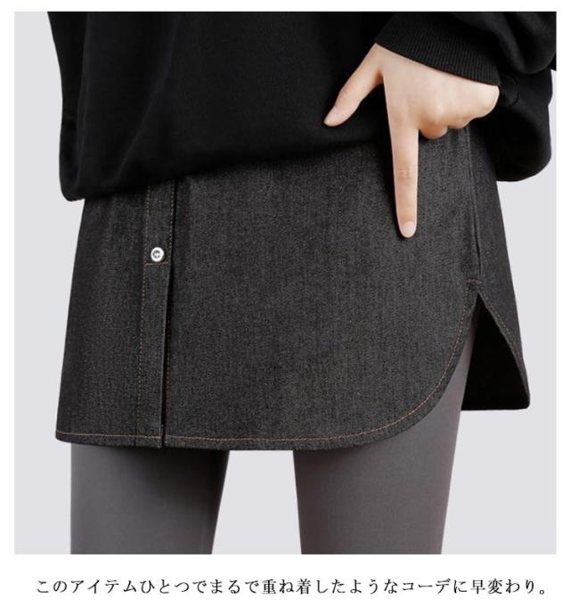 無地 つけ裾 付け裾 フェイクレイヤードシャツ レイヤード デイリー ボタン ウエストゴム デニム かわいい 重ね着風 カジュアル 付け裾 レディース おしゃれ シンプル 体型カバー お出かけ Aライン トップス ボトムス 女性 シャツ 体型カバー