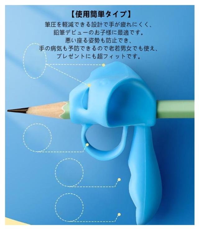 | 【使用簡単タイプ】筆圧を軽減できる設計で手が疲れにくく、鉛筆デビューのお子様に最適です。悪い座る姿勢も防止でき、手の病気も予防できるので老若男女でも使え、プレゼントにも超フィットです。 【わかりやすい使い方】上部の2つの穴は親指、人差し指の固定に使用でき、親指、人差し指は凹状のへこみがあり、滑りにくい指紋模様が付いているので、違和感なく正しい持ち方が把握できます。 【上質のシリコン素材】オープン円筒型構造なので、鉛筆矯正クリップの通気性が良く、見た目にもキレイだけでなく、引っ張っても割れません。柔軟性を持って書き心地が良く、また毒も匂いもなく、長持ちで環境に優しいです。 【マルチカラーで気分もワキワキ!】ペンや鉛筆にグリップとして装着するだけ!装着した状態でペンを握ると正しい持ち方になります。お子様に超オススメのアイテムです!また、さまざまな色で気分をワキワキさせてくれますね。 | |