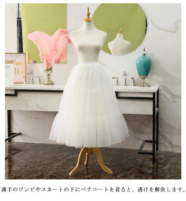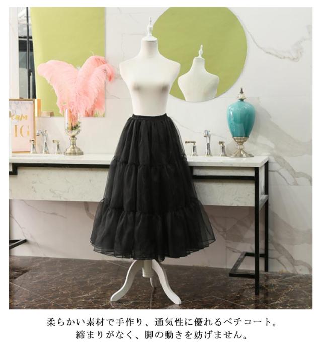 | 【着丈80cm】【ふわふわ】 ワンピースやドレス、スカートをボリュームアップしてゴージャス&エレガントに♪ 【透け防止】薄手のワンピやスカートの下にペチコートを着ると、透けを解決します。 【快適な着用感】柔らかい素材で手作り、通気性に優れるペチコート。締まりがなく、脚の動きを妨げません。 【機能】スカートやワンピース、ドレスなどのインナーとして着用することで、とても快適にエレガントにお召しいただけます。 【適用場合】パーティー 、イベント、ハロウィン、舞台衣装、アロハフラ、ハワイアン、ハワイフラで大活躍のアイテムです。普段使いにもお使いいただけます。 | |