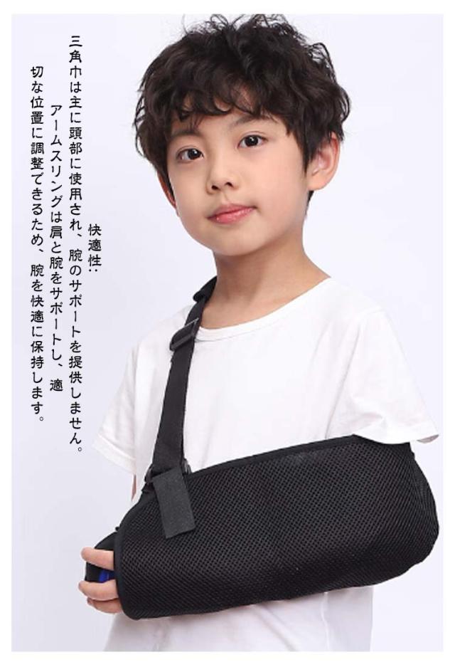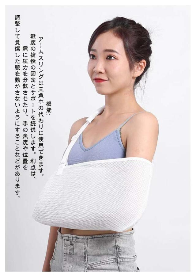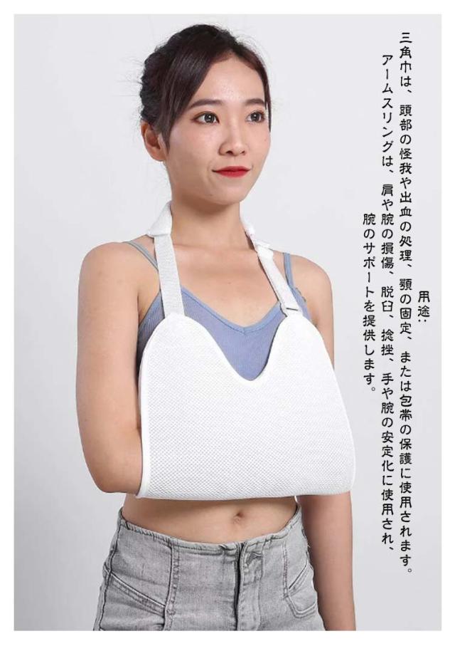 | 簡単装着♪ 大人用/子供用 男女兼用/左右兼用 肘まで包み込むアームホルダー パット付きで肩にやさしい 2タイプ 頼りになる耐久性と使い勝手を備えたアクセサリー! 骨折時や急な負傷時に! <お勧めポイント> ポイント1 デザイン: 人間工学に基づいたデザインは左右の肩および腕に適合します。アームスリングは、通気性、軽量性、耐久性に優れた高品質の合成メッシュ素材で作られています。 ポイント2 調整可能: 手首の袖口とショルダーストラップを使用して、個々の状態に合わせて長さを簡単に調整できます。使い勝手がよく、着用しやすいです。 ポイント3 適用用途: 上半身の骨や軟部組織の損傷、肩の脱臼など固定に適しています。前腕と肘の関節の軽傷や他の手や腕の軽傷にも使えます。 ポイント4 機能: アームスリングは三角巾の代わりに使用できます。軽度の捻挫の固定とサポートを提供します。利点は、肩に圧力を分散させたり、手の角度や位置を調整して負傷した腕を動かさないようにすることなどがあります。 ポイント5 簡単装着: ストラップを使用領域に配置した後、バックルを正面から固定し、肘の角度と手の位置に合わせて快適な位置に上下に調整し簡単装着で便利です。 三角巾とアームスリングの違い: 1形状: ・三角巾は、三角形の布で、頭部や顎の下に巻くことを目的としています。 ・アームスリングは、肩と腕をサポートするために設計されており、腕を肩から吊るす形状です。 2用途: ・三角巾は、頭部の怪我や出血の処理、顎の固定、または包帯の保護に使用されます。 ・アームスリングは、肩や腕の損傷、脱臼、捻挫、手や腕の安定化に使用され、腕のサポートを提供します。 3材料: ・三角巾は通常綿製の生地で作られており、比較的シンプルな材料です。 ・アームスリングは、高品質な合成メッシュ素材や他の耐久性のある材料で製造され、通気性と軽量性を提供します。 4快適性: ・三角巾は主に頭部に使用され、腕のサポートを提供しません。 ・アームスリングは肩と腕をサポートし、適切な位置に調整できるため、腕を快適に保持します。 5適切な用途: ・三角巾は主に頭部の怪我や包帯の保護に使用され、顎の固定にも適しています。 ・アームスリングは肩や腕の損傷、脱臼、捻挫、手や腕の固定に適しており、安定性を提供します。 | |