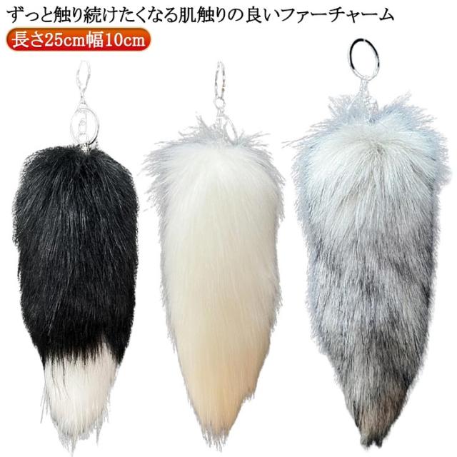 ファーチャーム バッグチャーム しっぽ 長25cm フェイクファー 巨大 キーホルダー 女性 男性 動物 尻尾 もふもふ キーホルダー ファーチャーム ファーチャーム キーホルダー プレゼント