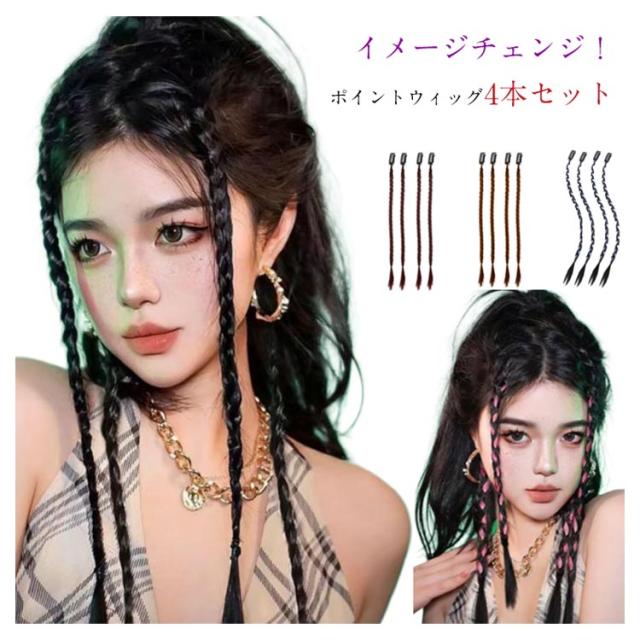 おしゃれ つけ毛 ワンタッチ ポイントウィッグ エクステ 4本セット 装着簡単 三つ編み ヒップホップ ダンス イメチェン 4本セット キッズ レディース 部分エクステ カラーエクステ 個性的 イメージチェンジ 可愛い ダンス衣装 舞台 45CM ギフト