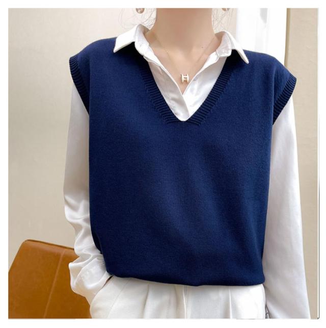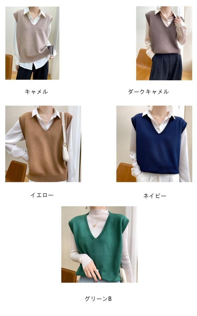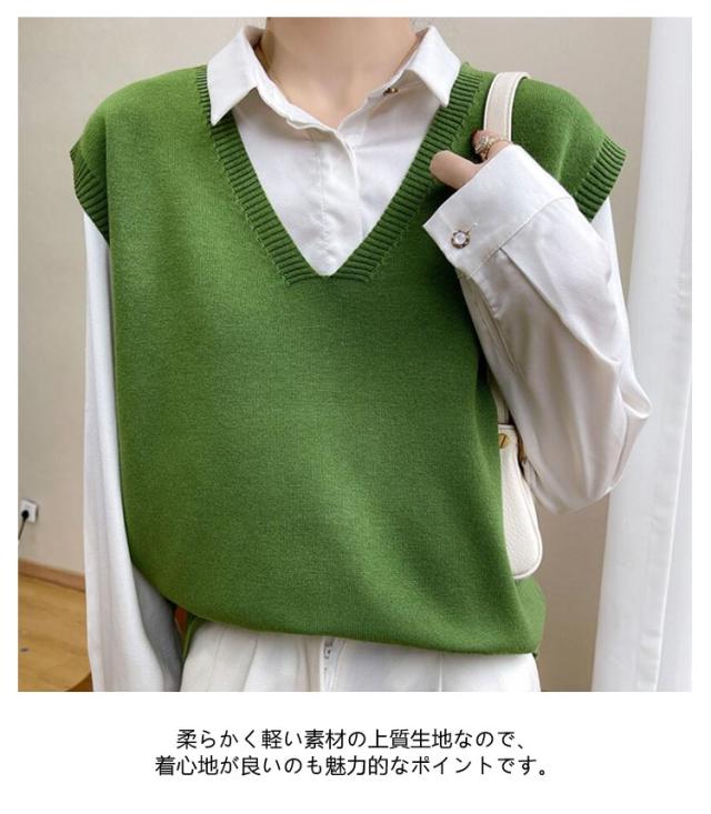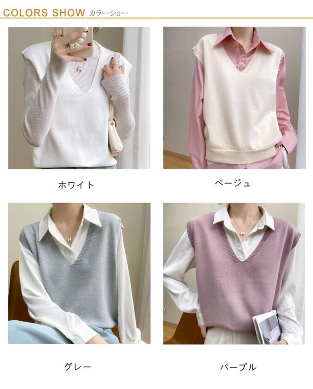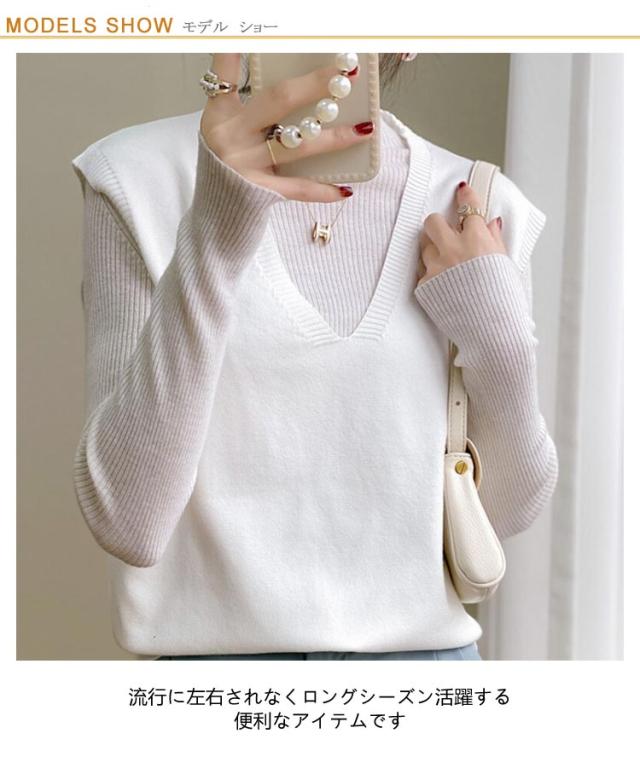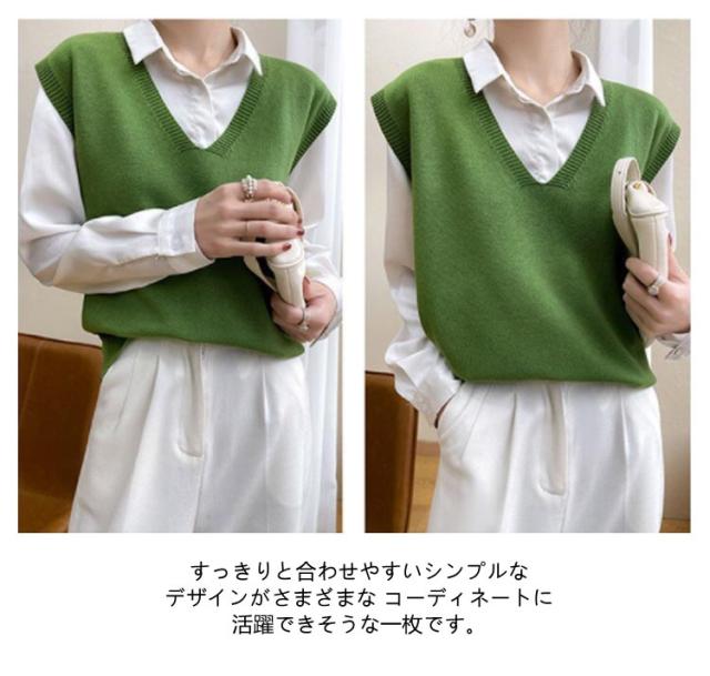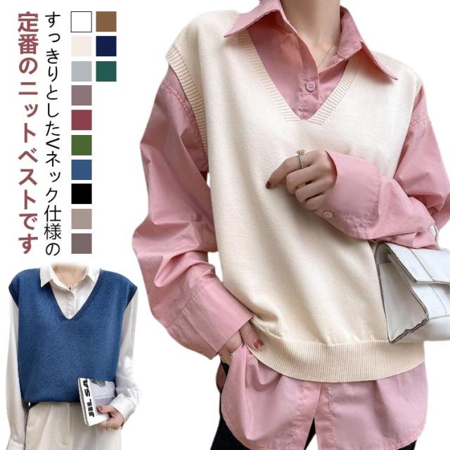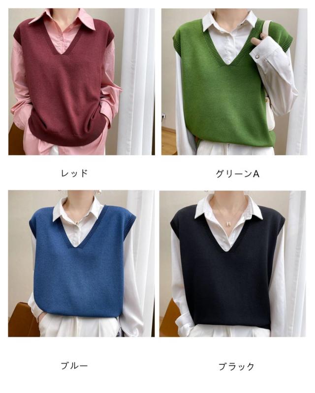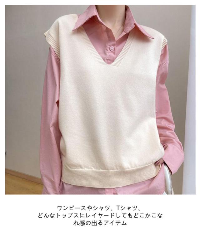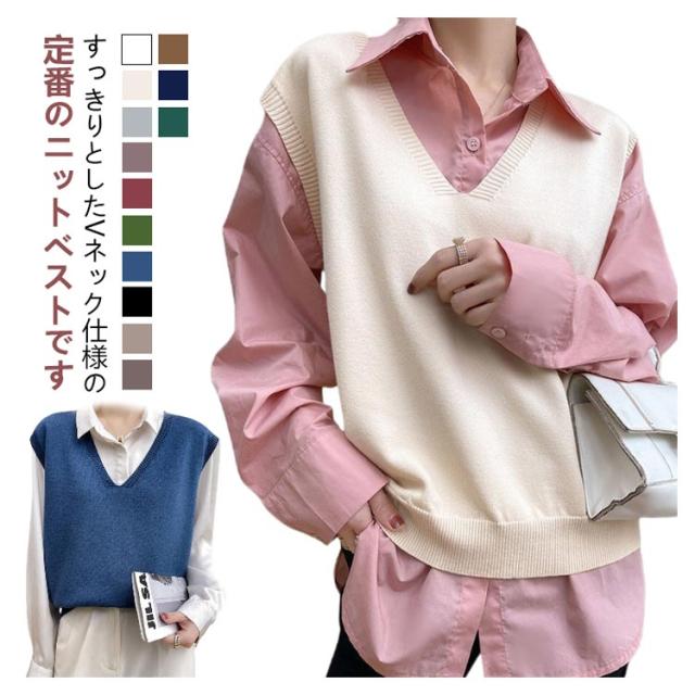 袖なし ノースリーブ セーター トップス ニットベスト Vネック レディース 韓国風 春 無地 ニットチョッキ 体型カバー ベスト おしゃれ カジュアル 通勤 重ね着風 ベスト リブ 秋 シンプル プルオーバー