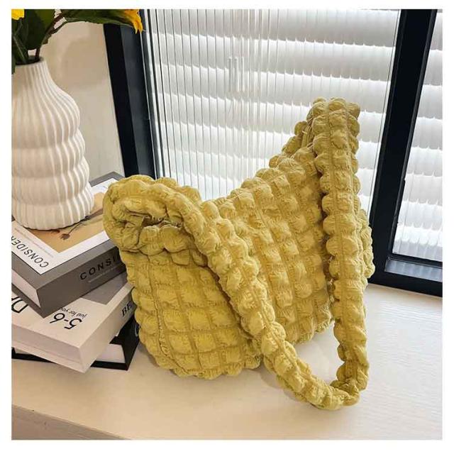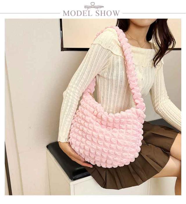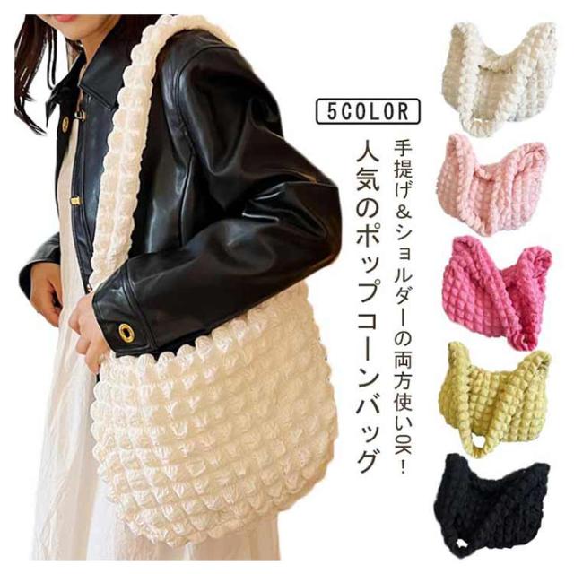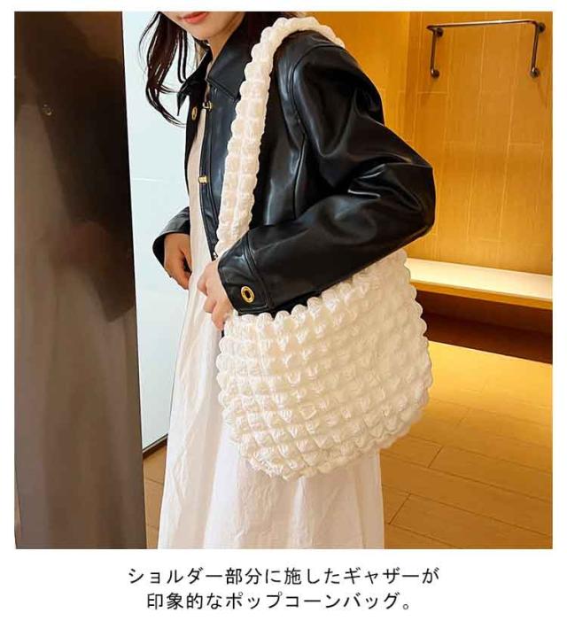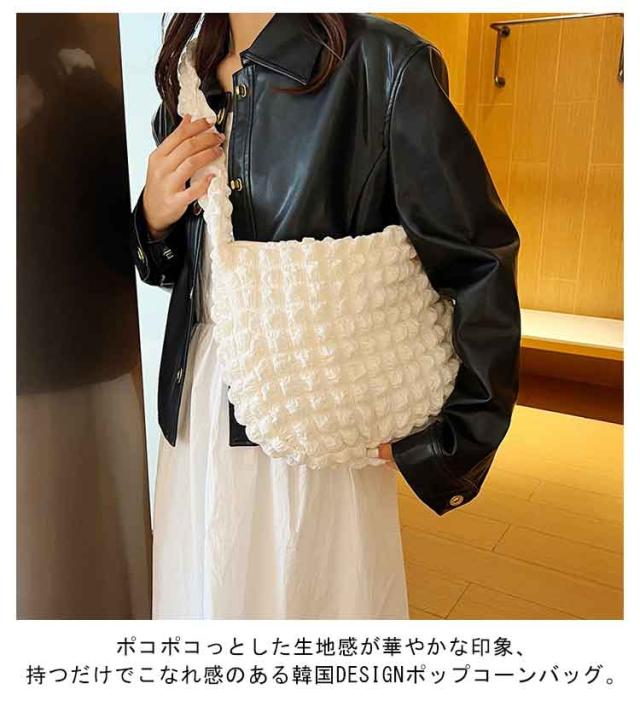 ポコポコ ポップコーンバッグ 収納 ショルダーバッグ おしゃれ おしゃれ 斜め掛けバッグ ギャザーショルダー かわいい ハンドバッグ 通学 ぽこぽこ 軽量 キルティング トート シャーリング 通勤 大容量 シンプル 無地 ポップコーンバッグ カバン