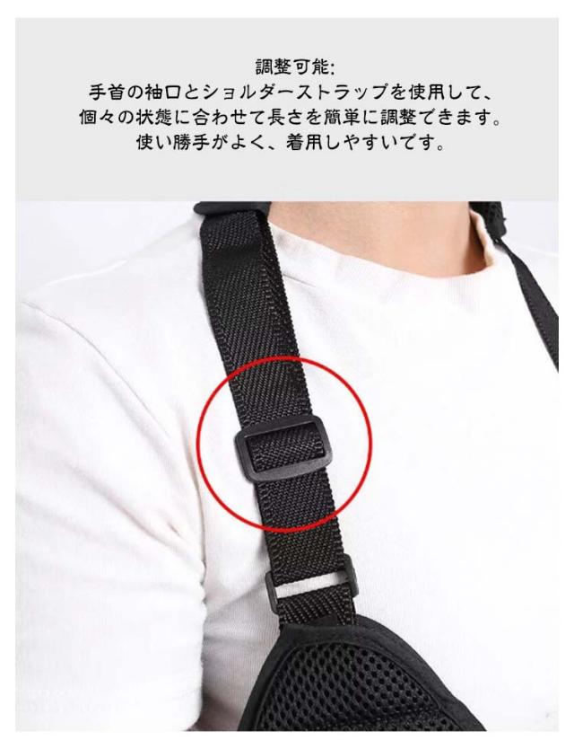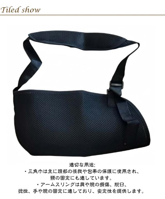 | 簡単装着♪ 大人用/子供用 男女兼用/左右兼用 肘まで包み込むアームホルダー パット付きで肩にやさしい 2タイプ 頼りになる耐久性と使い勝手を備えたアクセサリー! 骨折時や急な負傷時に! <お勧めポイント> ポイント1 デザイン: 人間工学に基づいたデザインは左右の肩および腕に適合します。アームスリングは、通気性、軽量性、耐久性に優れた高品質の合成メッシュ素材で作られています。 ポイント2 調整可能: 手首の袖口とショルダーストラップを使用して、個々の状態に合わせて長さを簡単に調整できます。使い勝手がよく、着用しやすいです。 ポイント3 適用用途: 上半身の骨や軟部組織の損傷、肩の脱臼など固定に適しています。前腕と肘の関節の軽傷や他の手や腕の軽傷にも使えます。 ポイント4 機能: アームスリングは三角巾の代わりに使用できます。軽度の捻挫の固定とサポートを提供します。利点は、肩に圧力を分散させたり、手の角度や位置を調整して負傷した腕を動かさないようにすることなどがあります。 ポイント5 簡単装着: ストラップを使用領域に配置した後、バックルを正面から固定し、肘の角度と手の位置に合わせて快適な位置に上下に調整し簡単装着で便利です。 三角巾とアームスリングの違い: 1形状: ・三角巾は、三角形の布で、頭部や顎の下に巻くことを目的としています。 ・アームスリングは、肩と腕をサポートするために設計されており、腕を肩から吊るす形状です。 2用途: ・三角巾は、頭部の怪我や出血の処理、顎の固定、または包帯の保護に使用されます。 ・アームスリングは、肩や腕の損傷、脱臼、捻挫、手や腕の安定化に使用され、腕のサポートを提供します。 3材料: ・三角巾は通常綿製の生地で作られており、比較的シンプルな材料です。 ・アームスリングは、高品質な合成メッシュ素材や他の耐久性のある材料で製造され、通気性と軽量性を提供します。 4快適性: ・三角巾は主に頭部に使用され、腕のサポートを提供しません。 ・アームスリングは肩と腕をサポートし、適切な位置に調整できるため、腕を快適に保持します。 5適切な用途: ・三角巾は主に頭部の怪我や包帯の保護に使用され、顎の固定にも適しています。 ・アームスリングは肩や腕の損傷、脱臼、捻挫、手や腕の固定に適しており、安定性を提供します。 | |