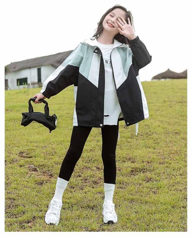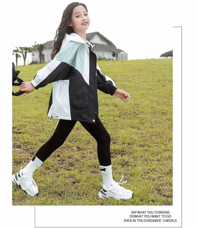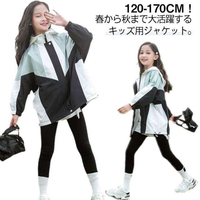 ジャンパー 秋物 春 フード付き 女の子 マウンテンパーカー 切り替え ジャケット マウンテンパーカー 送料無料 防風 春コート 薄手 アウター ジップアップ 配色 子供服 お洒落 ブルゾン ガールズ ジャンパー カジュアル トップス 秋 ウィンドブレーカー 120 130 140 150 160