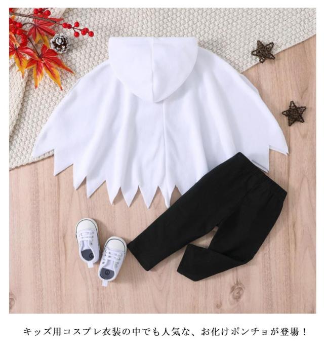 | 【2点セット】【お化けポンチョ】 セット内容:トップス+パンツ キッズ用コスプレ衣装の中でも人気な、お化けポンチョが登場! お子様の体をすっぽり覆うシルエットがキュート♪ フードもついているので、全身のシルエットがとても可愛い作りになっています。 カラーバリエーションも豊富なので、きょうだいやお友達とお揃いで着るのもオススメ。 着脱しやすく、動きやすいので元気いっぱいなお子様にもピッタリです。 ハロウィンパーティーやテーマパークへのお出かけ、お遊戯会、文化祭、お誕生日などの記念日、写真撮影などに使えます! | |