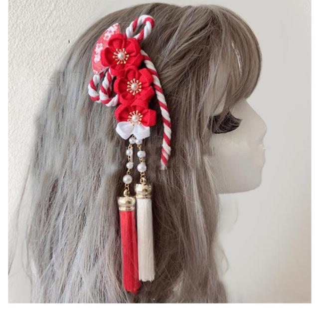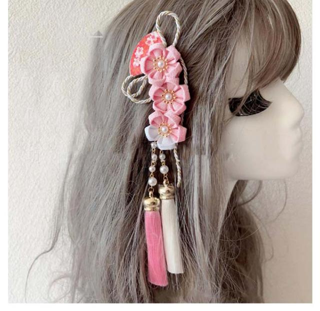 赤系 髪飾り 髪飾り 浴衣 ピンク レッド 七五三 縮緬 ちりめん 成人式 梅 着物 房飾り 髪留め 花 ヘアアクセサリー 和装 つまみ細工 振袖 袴 卒業式 結婚式 着物 組紐 お祭り 手作り 前撮り ヘアクリップ 雛祭り