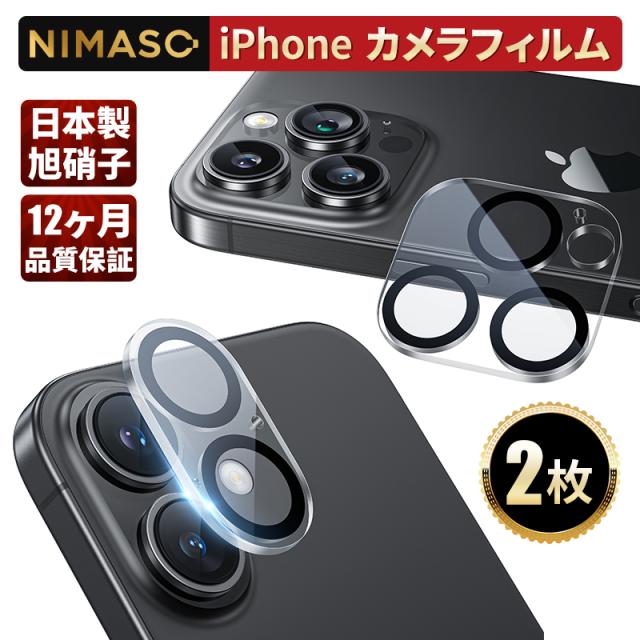 NIMASO カメラフィルム iPhone 16/iPhone 16 Plus 用 カメラ保護 全面保護 黒縁取り レンズカバー アイフォン16/16プラス 対応 2枚セット