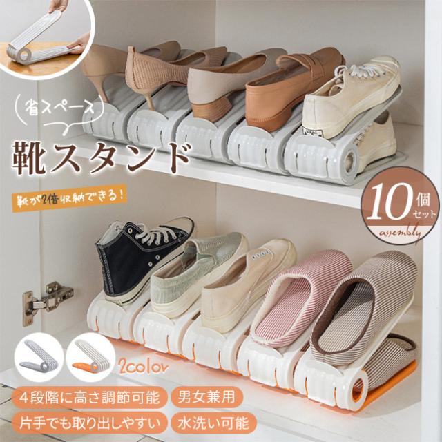 【10個セット】靴ホルダー 靴スタンド 収納 省スペース シューズラック 靴箱 下駄箱 4段階高さ調節対応 滑り止め スニーカー収納 男女兼用