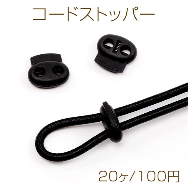 コードストッパー 2穴 紐長さ調節パーツ 靴紐ストッパー 紐止め パーカーフードの紐抜け防止 プラスチック製 (20ヶ)