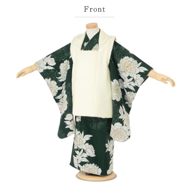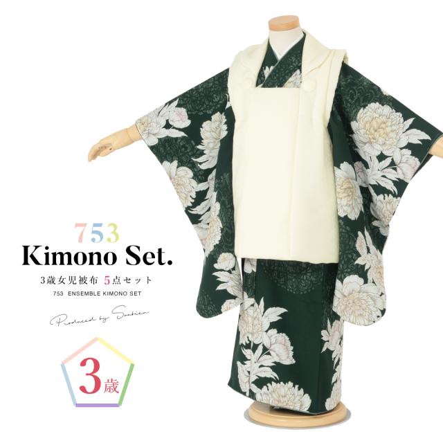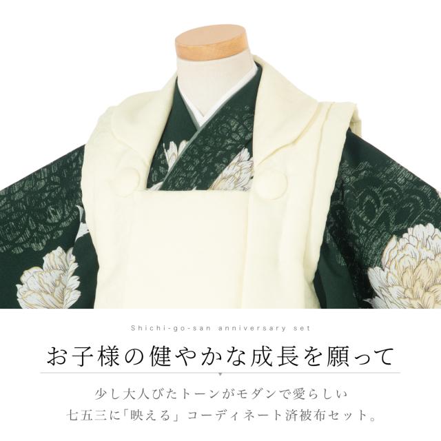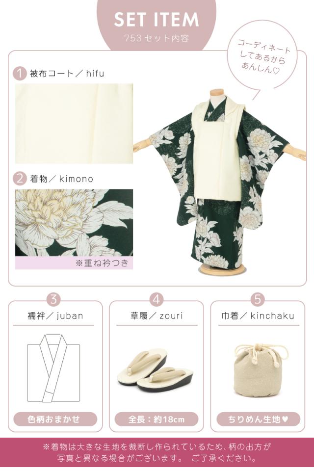 七五三 着物 3歳 レトロ 被布 販売 女の子 三歳 着物セット 被布コート 襦袢 草履 セット かわいい おしゃれ 緑 黒 花柄 和装 女児 子供 送料無料