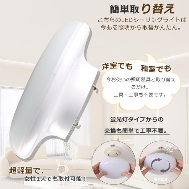 - 電気工事不要で、新築にもぴったりだし、今お使いのシーリングライトをも簡単に付け替え可能。