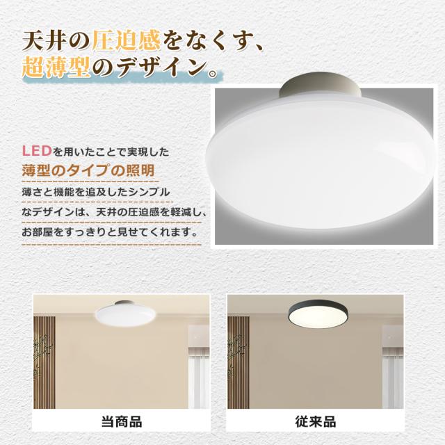 - 薄型シーリングライトは厚みがない分圧迫感がなく、お部屋がすっきりした印象に、シンプル設計で和室・洋室を問わず、違和感なくご使用頂けます。