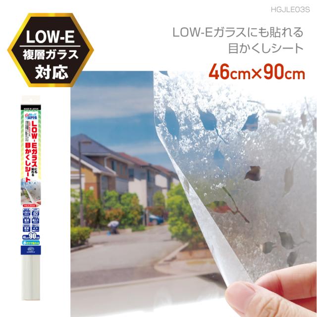 HGJLE03S 貼ってはがせる LOW-E複層ガラスにも貼れる 目かくしシート 半透明 キラキラ葉っぱ模様 46cm×90cm