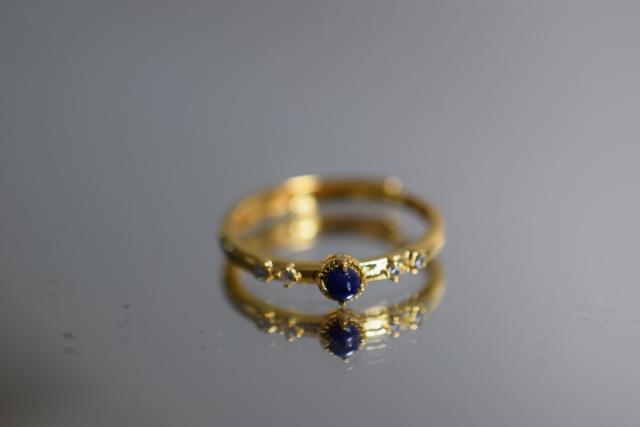 RS8-25 美品 ミニ ラピスラズリ 青金石 リング 指輪 フリーサイズ 金属アレルギー対応