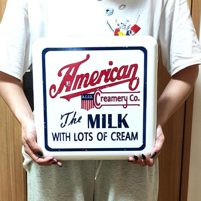 壁掛け ウォールデコ かわいい American MILK ホーロー風 ブリキ看板 メタルサインプレート おしゃれ ホワイト ビンテージ かっこいい