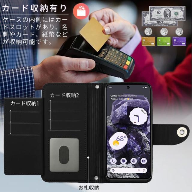 ケースの内側にはカードスロットがあり、名刺やカード、紙幣などが収納可能です。