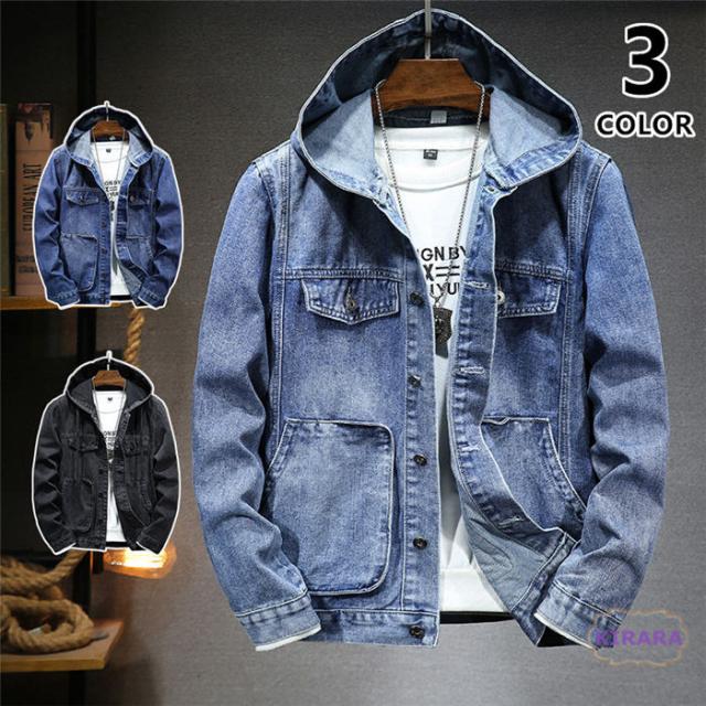 デニムジャケット メンズ ジージャン ビンテージ ジャンバー フード付き ウォッシュ 無地 ストリート スリム アウター ブルゾン カジュアル パーカー おしゃれ 春秋服 新作 Gジャン