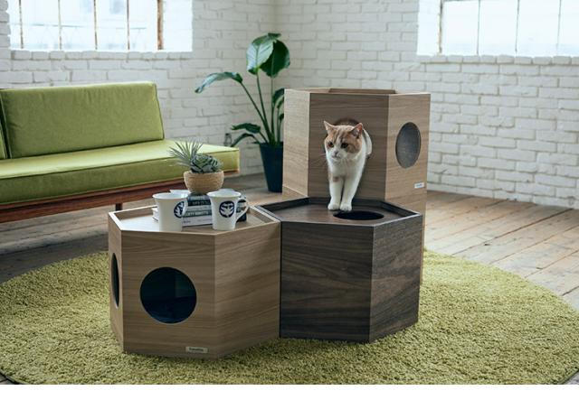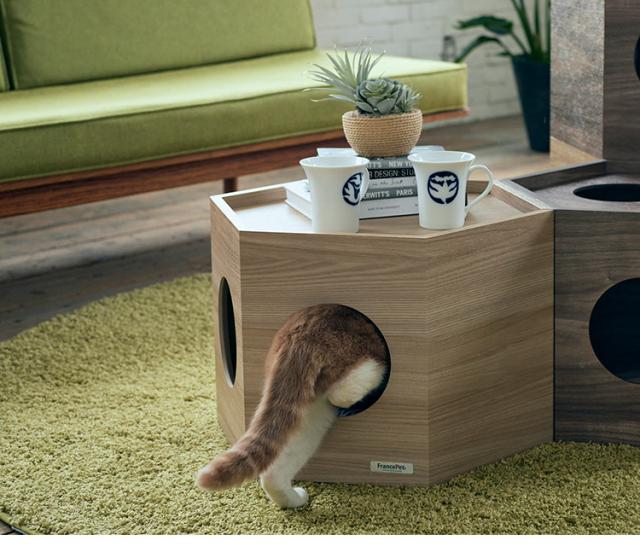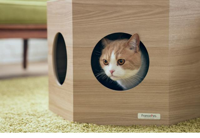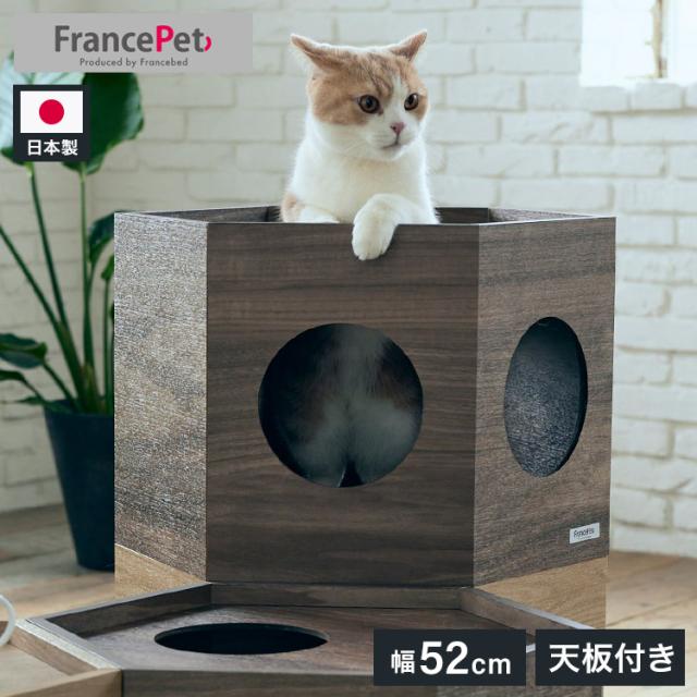フランスペット ペットハウス へキサ ウォルナット PE03 1個 重ねて使える ペットハウス キャットタワー ペット家具 フランスベッド(代引不可)【送料無料】