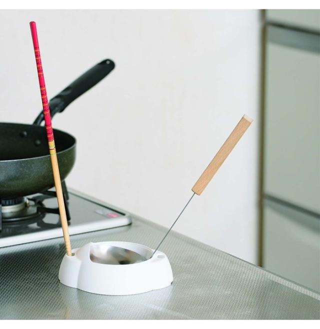 底が深いので、おたまを安定して立てられます。分解して洗浄できます。菜箸も立てる事ができます。