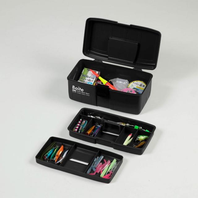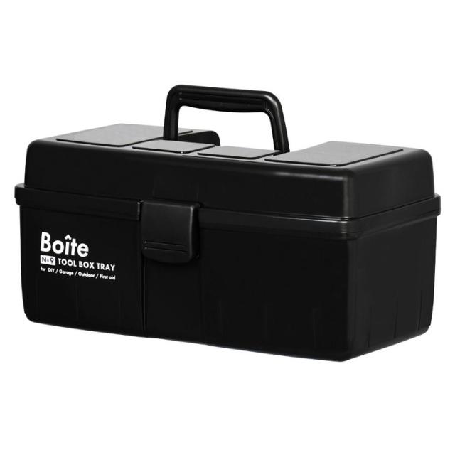 Boite デザインツールボックス 中皿式 ガレージ DIY アウトドア 工具箱 大容量 裁縫箱 ソーイングボックス パーツ ブラック MA-4026 おしゃれ