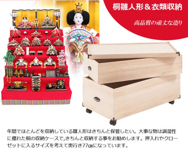 完成品 総桐 雛人形 収納 ケース 2段 高さ54.5cm 幅42cm 奥行き77cm 雛人形入れ 収納ケース 押入れ 押入れ収納 二段 人形ケース 雛人形収納 押入れ 桐(代引不可)【送料無料】