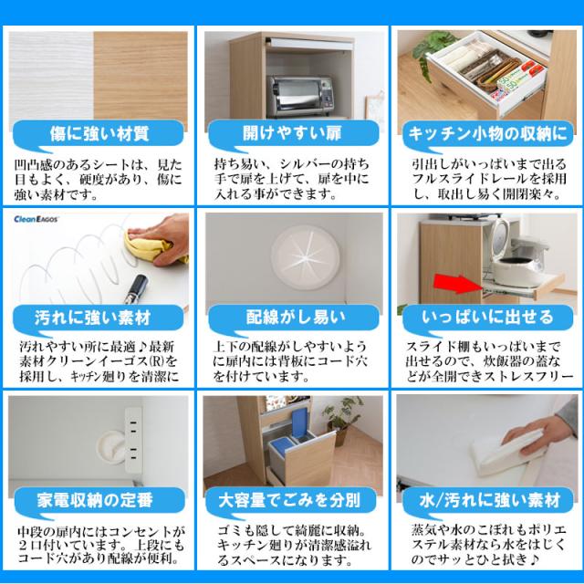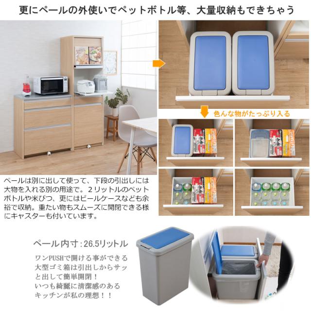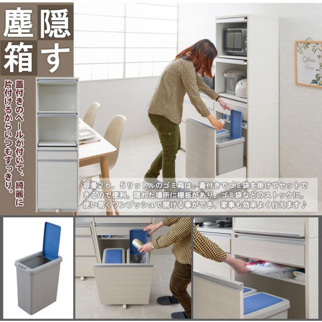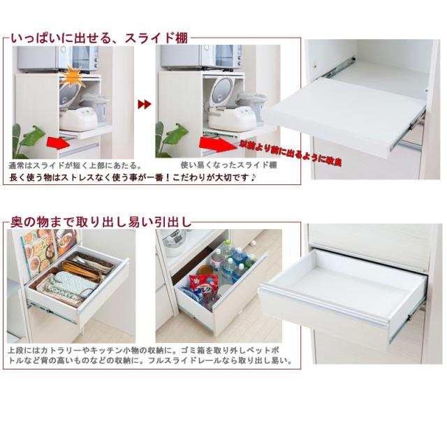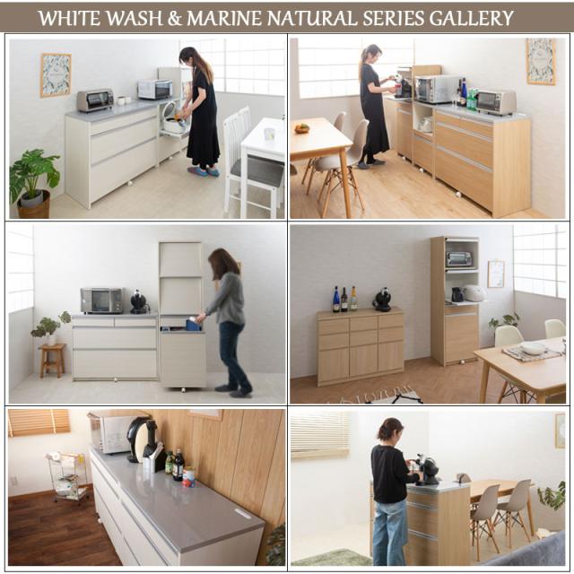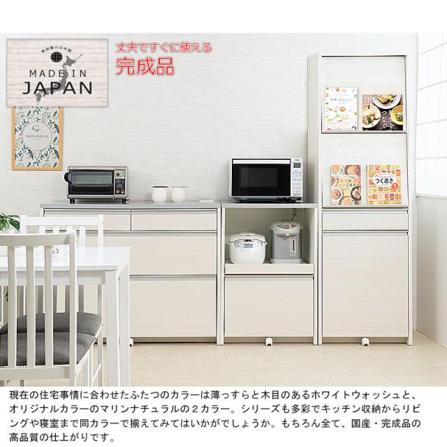 日本製 完成品 幅57.5 レンジボード ハイタイプ ホワイトウォッシュ 木目調 鏡面仕上げ 木製 引き出し キャスター付き レンジ 炊飯器 おしゃれ 北欧 食器棚 ダストボックス(代引不可)【送料無料】