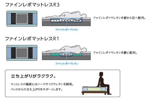 独自のノンスプリングクッション素材FINE REVO(ファインレボ)は、ヘタリにくく、眠りの質が長期間持続。
