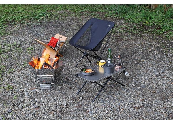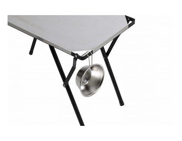 焚き火まわりに最適な、火にかけた鍋やダッチオーブンが直接置ける耐熱性が高いステンレス製のサイドテーブル。天板には耐熱性が高いステンレスを採用。キズの目立たないエンボス加工天板。持ち運びに便利な収納バッグ付。