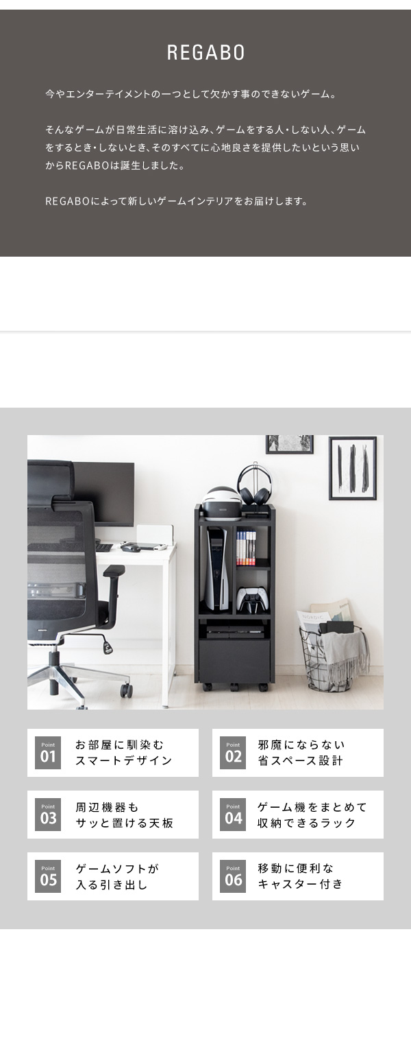ゲーム機ラック REGABO レガボ PS5対応 キャスター付きゲーム 収納棚 GRK-001 ゲーミングラック ゲーム機 収納 コントローラー収納 ゲーム機収納ラック 引き出し リビング収納(代引不可)【送料無料】