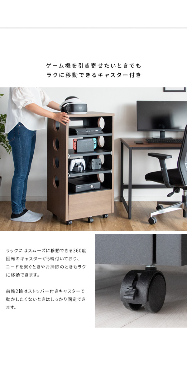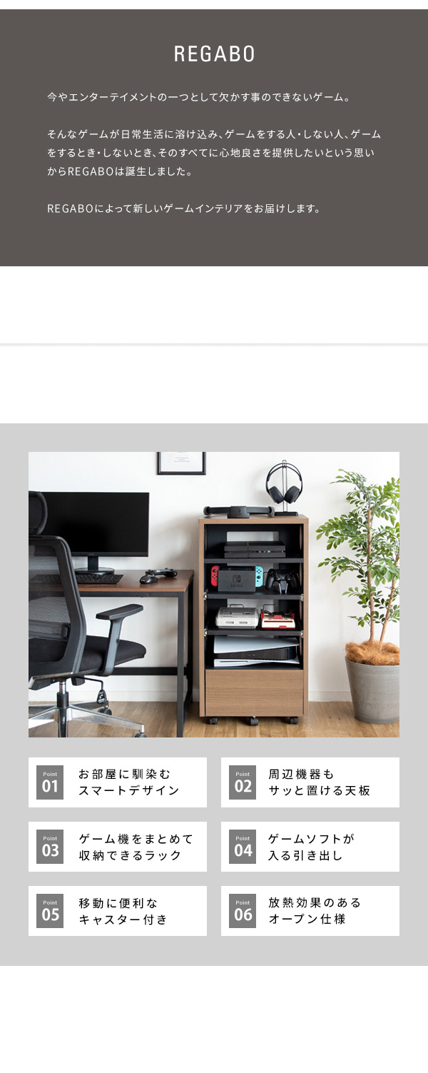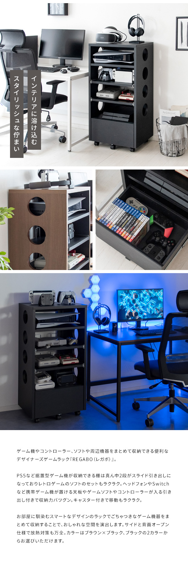 ゲーム機ラック REGABO レガボ PS5対応 キャスター付きゲーム 収納棚 GRK-002 ゲーミングラック ゲーム機 収納 コントローラー収納 ゲーム機収納ラック 引き出し リビング収納(代引不可)【送料無料】
