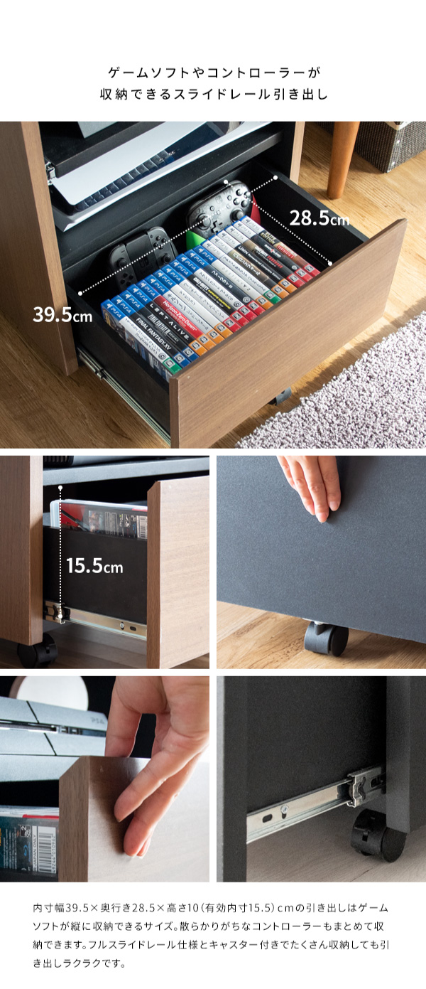 引出にはゲーム機周辺機器やゲームソフトが収納(ソフト最大35枚収納可能)できます。