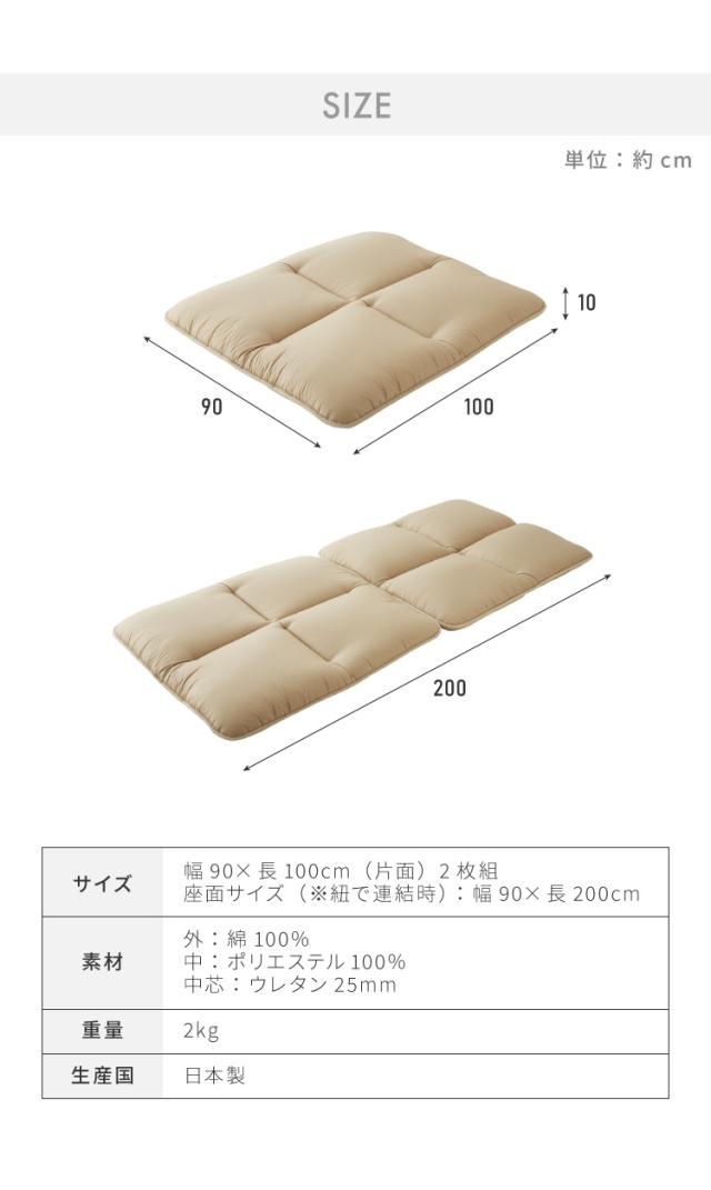 座面サイズ(※紐で連結時):幅90×長200cm