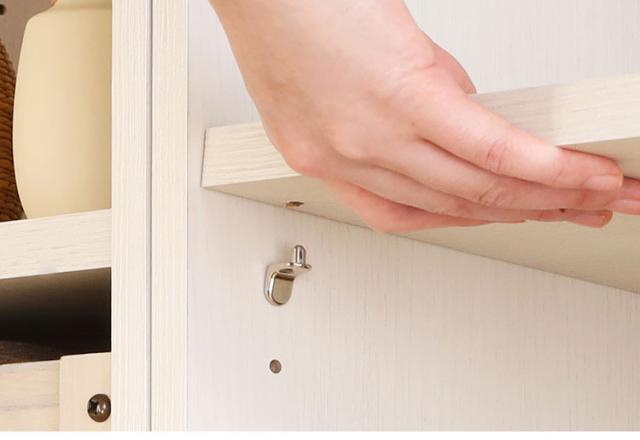 ・本体の広がりを抑える機能を強化したオリジナルの棚受け金具を使用することで、すべての棚をお好みの位置に移動できます。