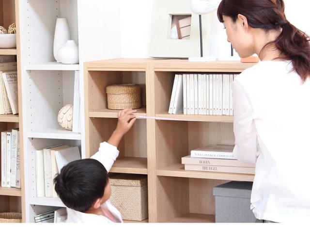 ・本体の広がりを抑える機能を強化したオリジナルの棚受け金具を使用することで、すべての棚をお好みの位置に移動できます。