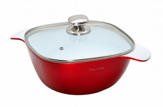 ガスコンロ、IH200V、デザインアンドスタイル、赤、セラミックコーティング、シャイニースクウェア