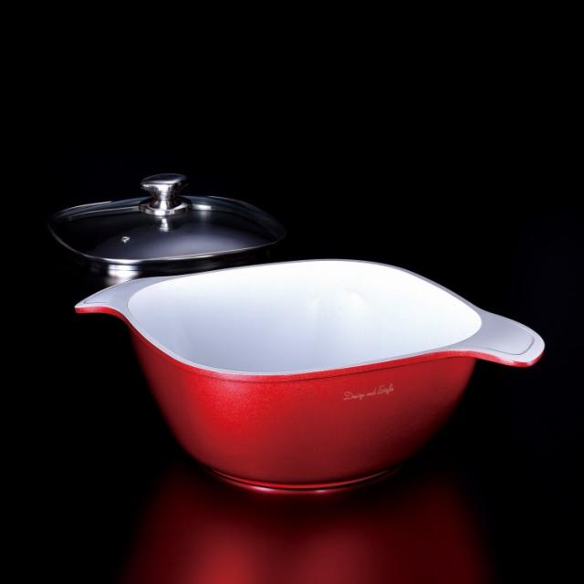 材質:本体/アルミニウム合金(内面:セラミック加工 外面:焼付塗装)はり底/ステンレス鋼(クロム18%) ふた/強化ガラス+ステンレス鋼