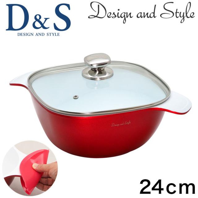D&S キャセロール セラミック両手鍋20cm 2.7L ガラス蓋付 シリコンマット付 IH対応 ガス火対応 レッド DSSHC20-WHRE【送料無料】