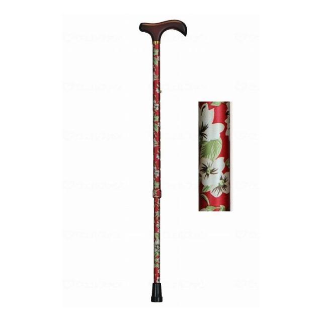 瀬川商店 アルミ製花柄伸縮杖 アカ【送料無料】