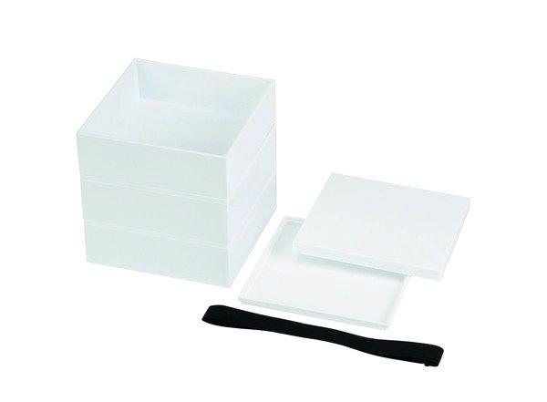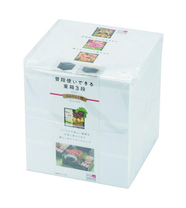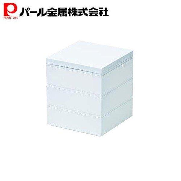 パール金属 普段使いできる重箱3段 ホワイトゴムベルト付 D-6595