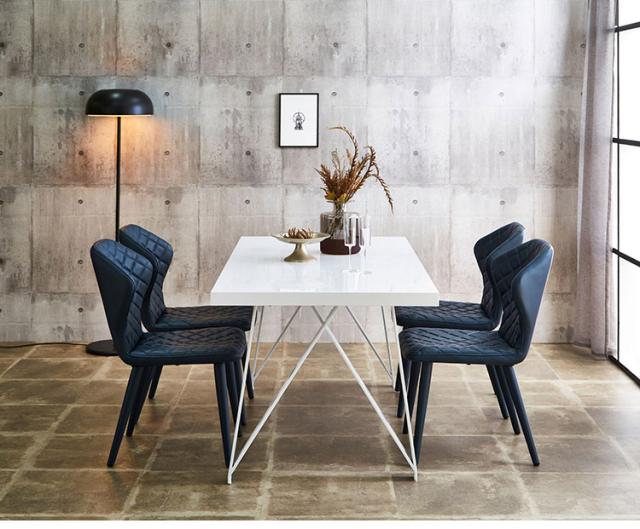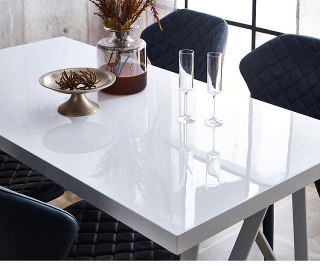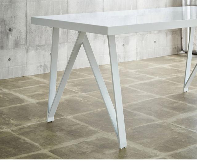 ホワイトは清潔感のある鏡面仕上げの天板とスチール脚の異素材の組み合わせ。