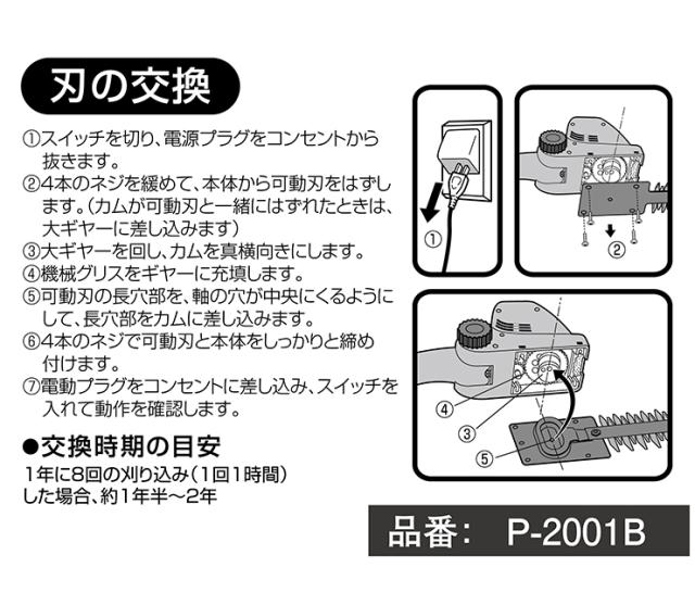 ムサシ Mr.ポールバリカン用替刃。刃の交換時期目安=1年に8回の刈り込み(1回=1時間)した場合、1年半〜2年が目安です。