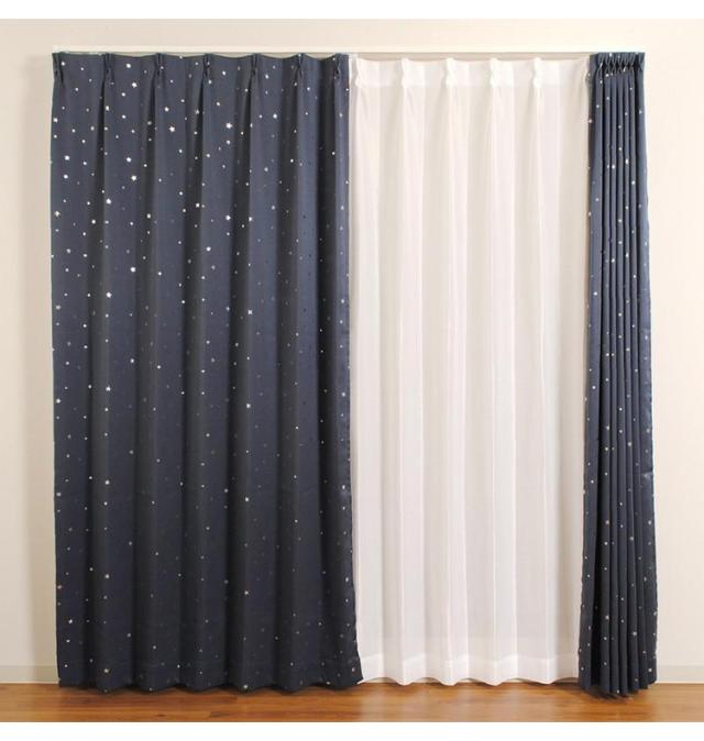 星柄 ドレープカーテン 2級遮光 幅100cm 丈135/178/200cm 2枚組 2枚セット おしゃれ かわいい かっこいい 遮光カーテン ウォッシャブル 洗える カーテン(代引不可)【送料無料】