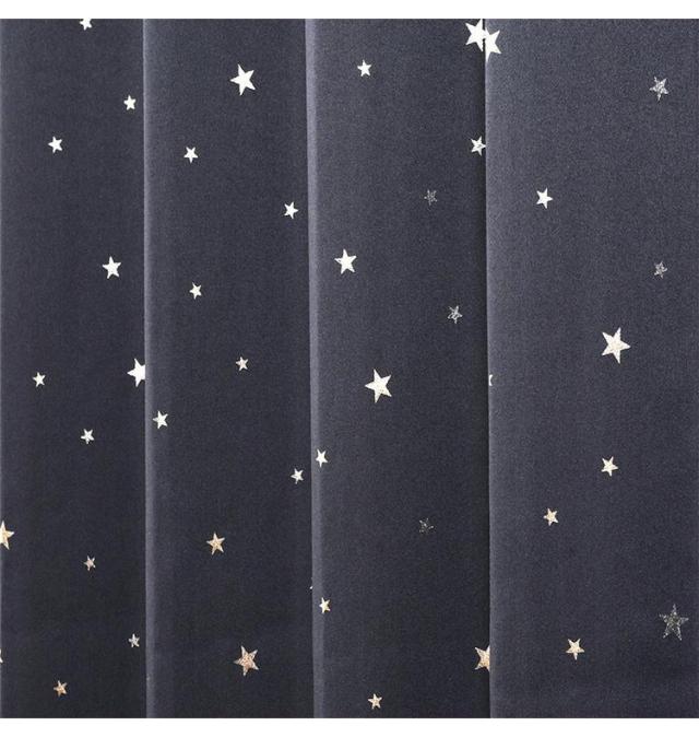 星のモチーフを箔プリントで表現されたかわいらしいドレープカーテン。さりげなく輝くシルバーの星柄。